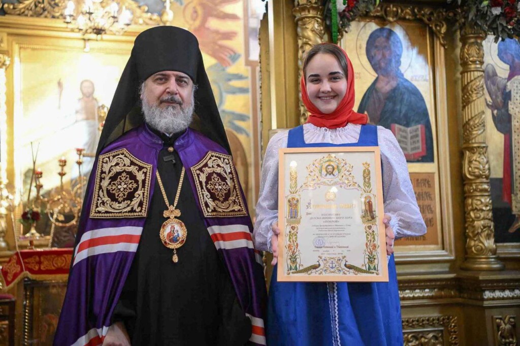 Также, во внимание к усердным трудам во славу Церкви Христовой медалью Сочинской епархии «апостола Симона Кананита» III степени была награждена заслуженная артистка Краснодарского края, художественный руководитель детско-юношеского хора «Покров» собора Архистратига Михаила г. Сочи Рыбакова Ирина Ефремовна. Затем во внимание к усердным трудам на благо Святой Церкви архиерейской грамотой был награждён коллектив детско-юношеского хора «Покров» собора Архистратига Михаила г. Сочи.