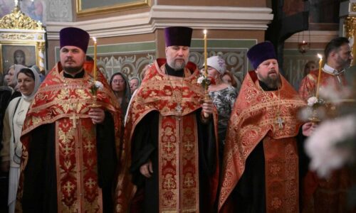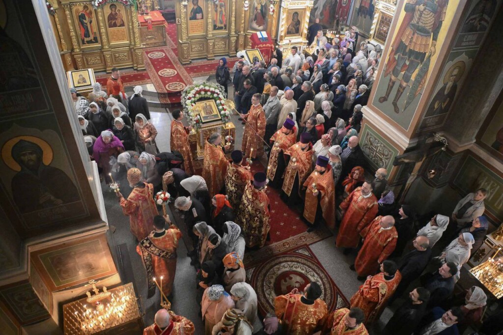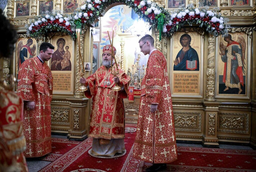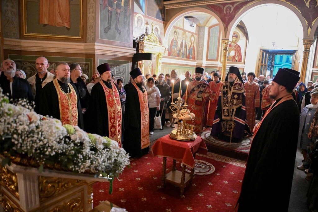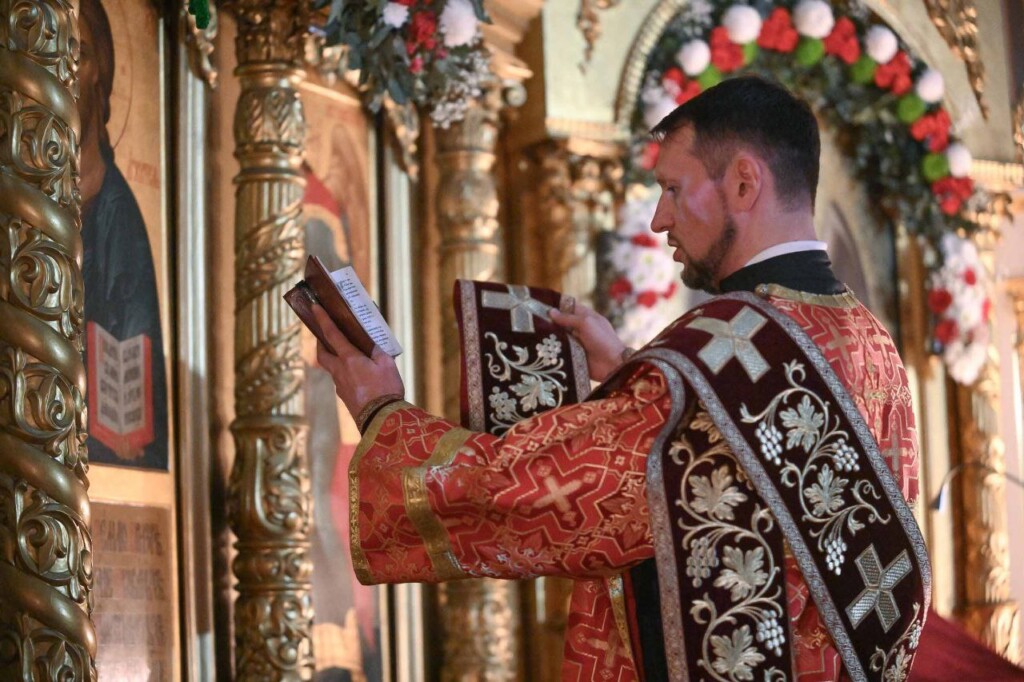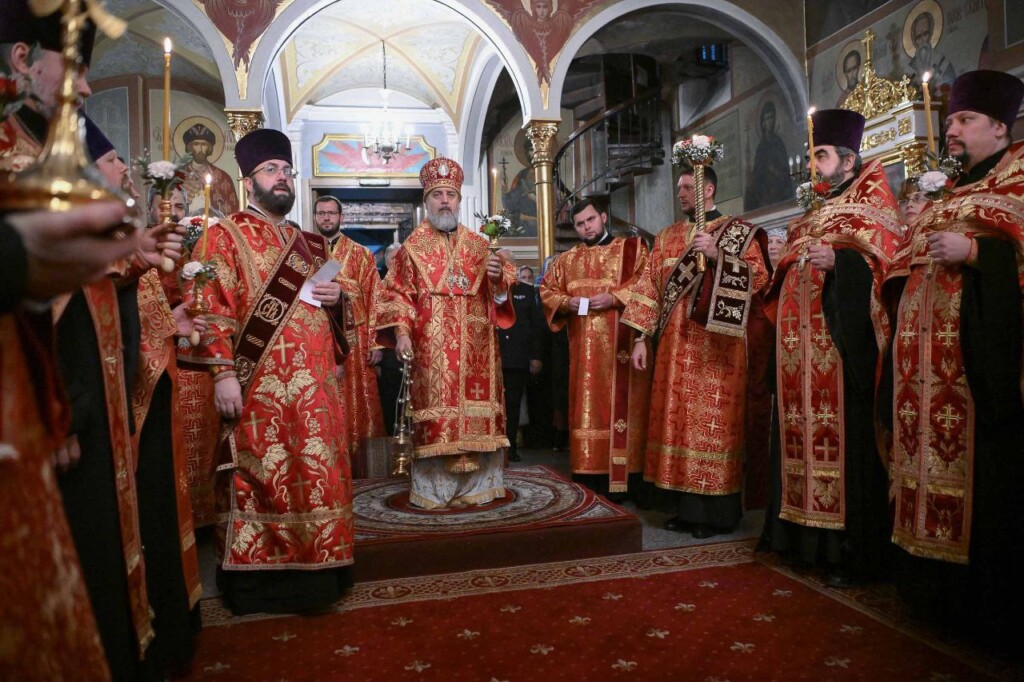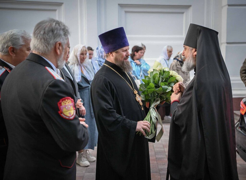 С Владыкой соборно молились: настоятель Свято-Михайловского собора протоиерей Александр Ковалев, штатные клирики собора протоиерей Александр Татаринов, протоиерей Андрей Лейка, иерей Вадим Ульяновский, настоятель Спасо-Преображенского храма Ейской епархии г. Ейска иерей Димитрий Самохин, насельник Троице-Сергиевой Лавры иеромонах Александр (Серпенинов), штатные клирики Свято-Владимирского кафедрального собора г. Сочи протодиакон Андрей Филиппов и диакон Даниил Назаров, а также штатные клирики Свято-Михайловского собора диакон Сергий Гришин и диакон Илия Савченко.