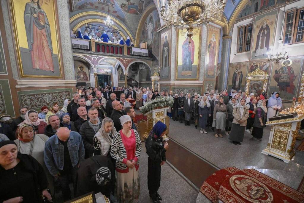 На Утрене Его Преосвященство прочитал отрывок из Евангелия от Матфея и помазал паству освященным елеем.